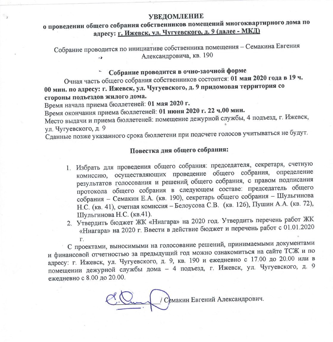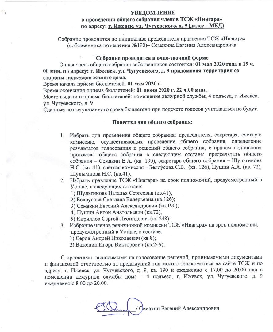 УВЕДОМЛЕНИЕ о проведении общего собрания собственников помещений МКД